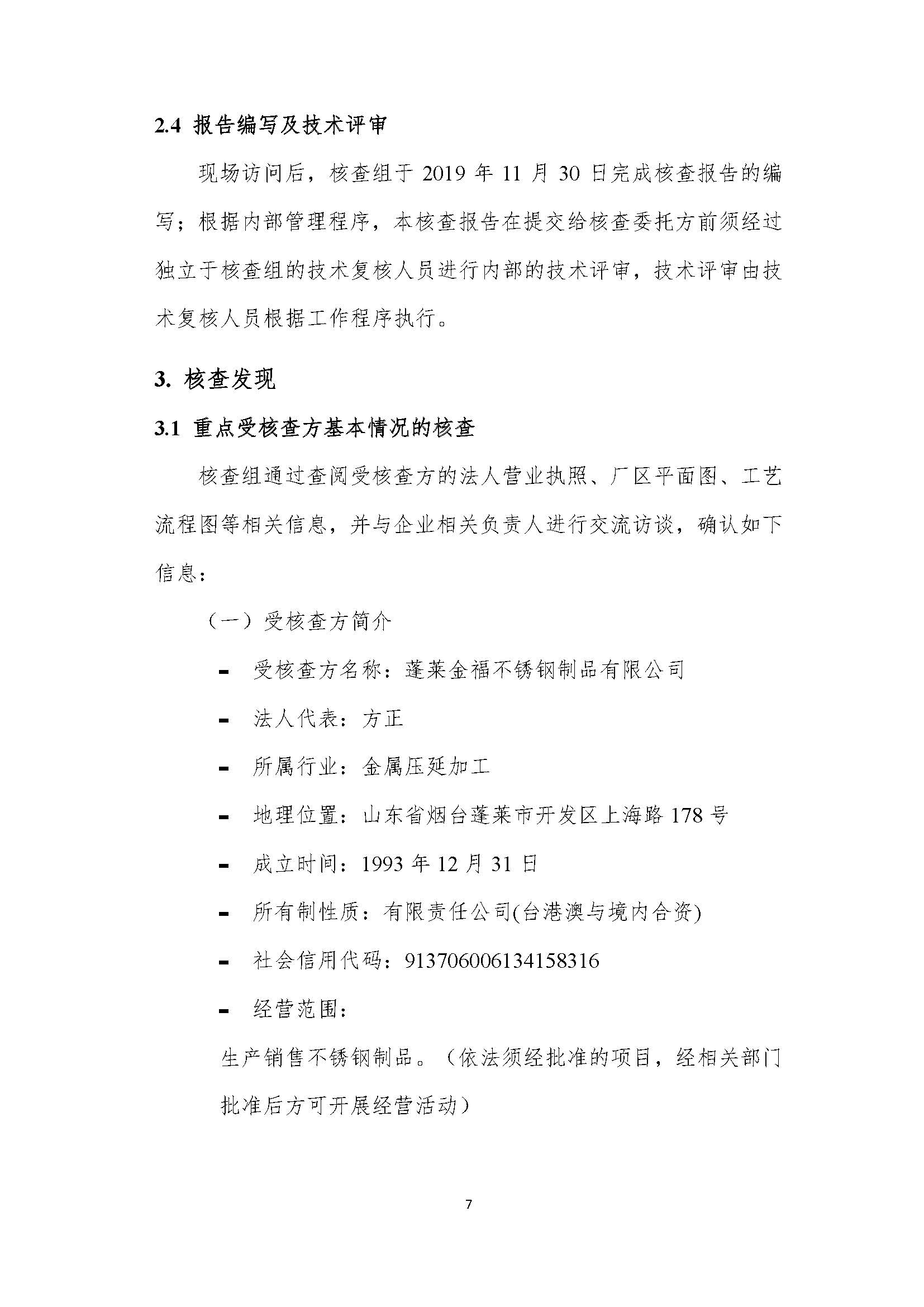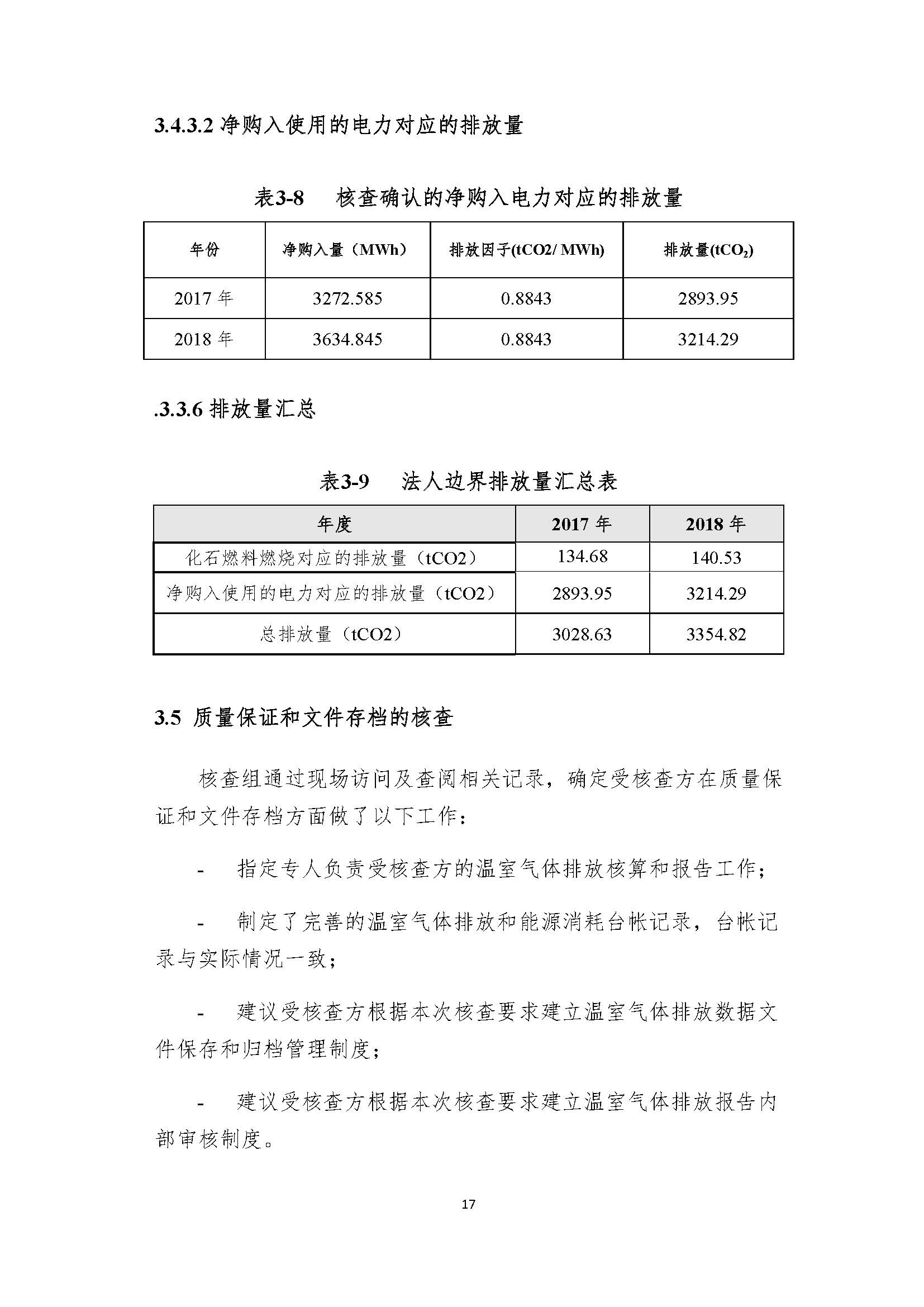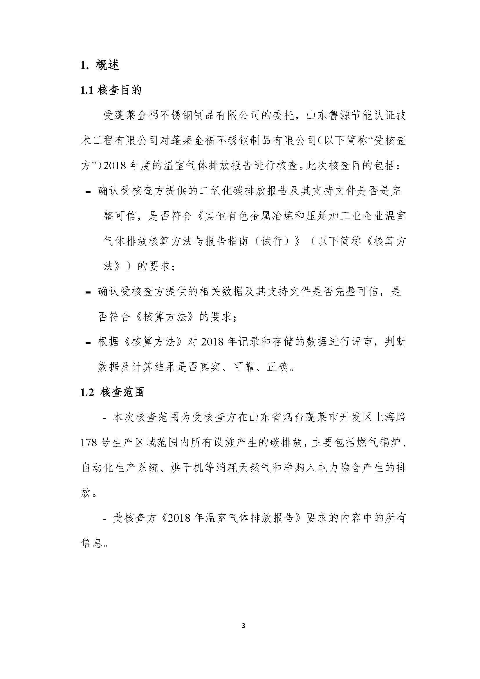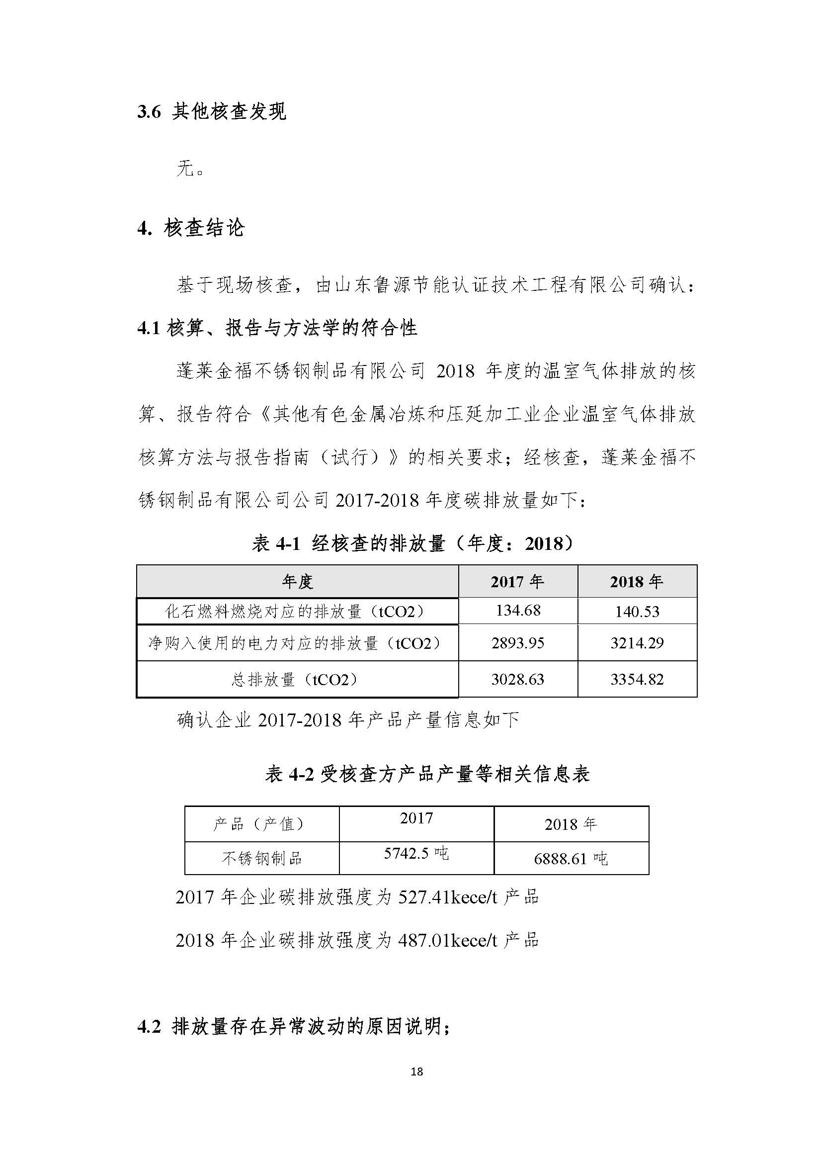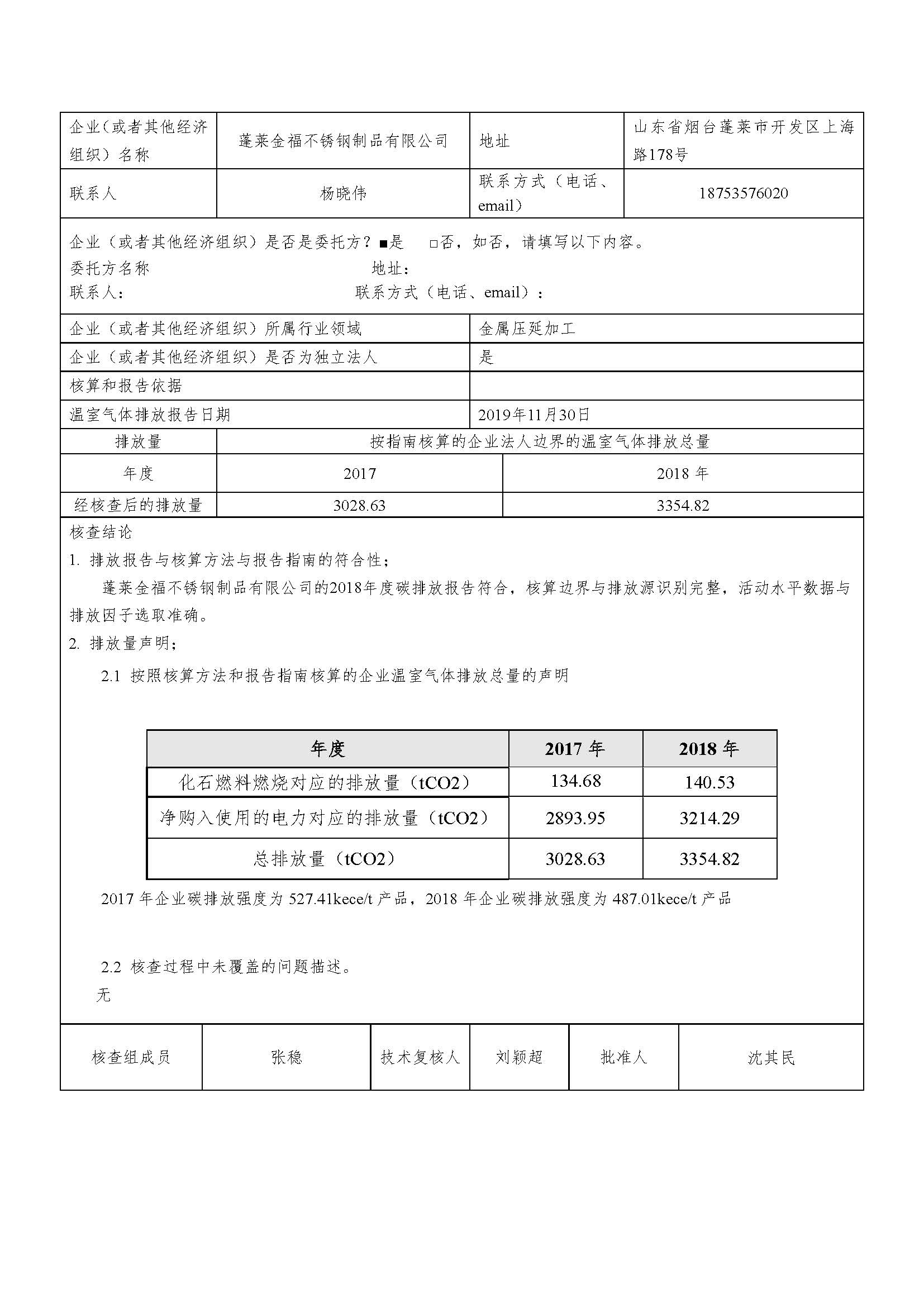 金福不銹鋼-溫室氣體排放核查報(bào)告2017-2018年度