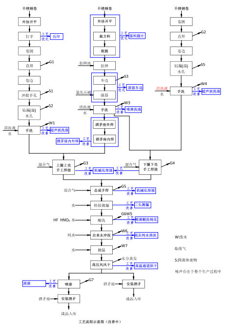 項(xiàng)目建設(shè)之初尚無產(chǎn)品生態(tài)設(shè)計的概念,當(dāng)時設(shè)計考慮較多的是一般的傳統(tǒng)因素(如利潤、功能、質(zhì)量、效率、市場等),沒有考慮將環(huán)境因素納入產(chǎn)品設(shè)計之中。如桶身拉伸用的圓片,2016年前屬于半機(jī)械化作業(yè),從不銹鋼板生產(chǎn)廠到形成圓片要經(jīng)過轉(zhuǎn)運(yùn)—代加工—轉(zhuǎn)運(yùn)—剪板—剪圓等過程,引進(jìn)偏擺送料自動生產(chǎn)線后,只經(jīng)過轉(zhuǎn)運(yùn)—生產(chǎn)(剪圓)兩個過程;拉伸工序與焊接工序之間的清洗工序,2014年由“手洗”改為噴淋洗滌和超聲波洗滌,等等從最初的勞動密集型手工作業(yè)、半機(jī)械化作業(yè)逐漸發(fā)展為低毒、節(jié)能的機(jī)械化、自動化作業(yè),逐漸形成了更生態(tài)、更經(jīng)濟(jì)、可持續(xù)發(fā)展的產(chǎn)品生產(chǎn)成果。